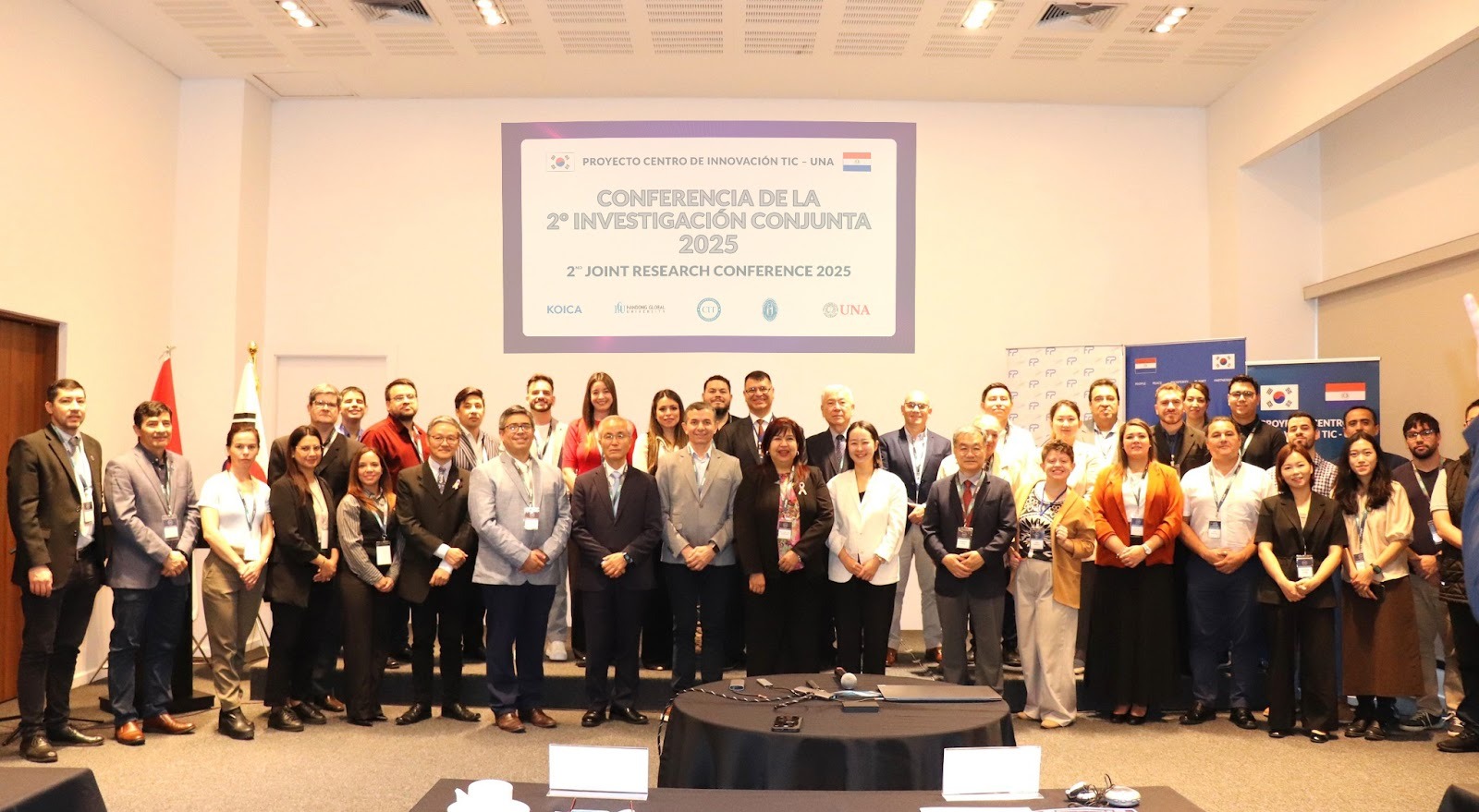 El martes 28 de octubre se llevó a cabo la Conferencia de la 2ª Investigación Conjunta 2025, en el marco del Proyecto Centro de Innovación TIC Paraguay-Corea, que promueve la cooperación bilateral en materia de investigación, desarrollo e innovación (I+D+i) en el ámbito tecnológico.