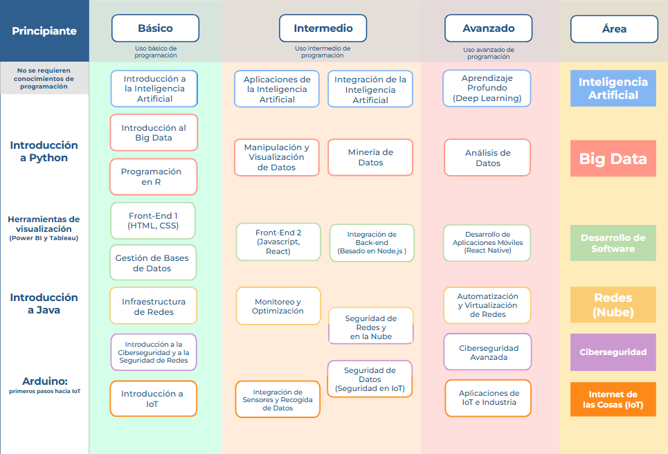 Descubre nuestro plan de estudios, dividido en 6 áreas clave en TIC en Paraguay